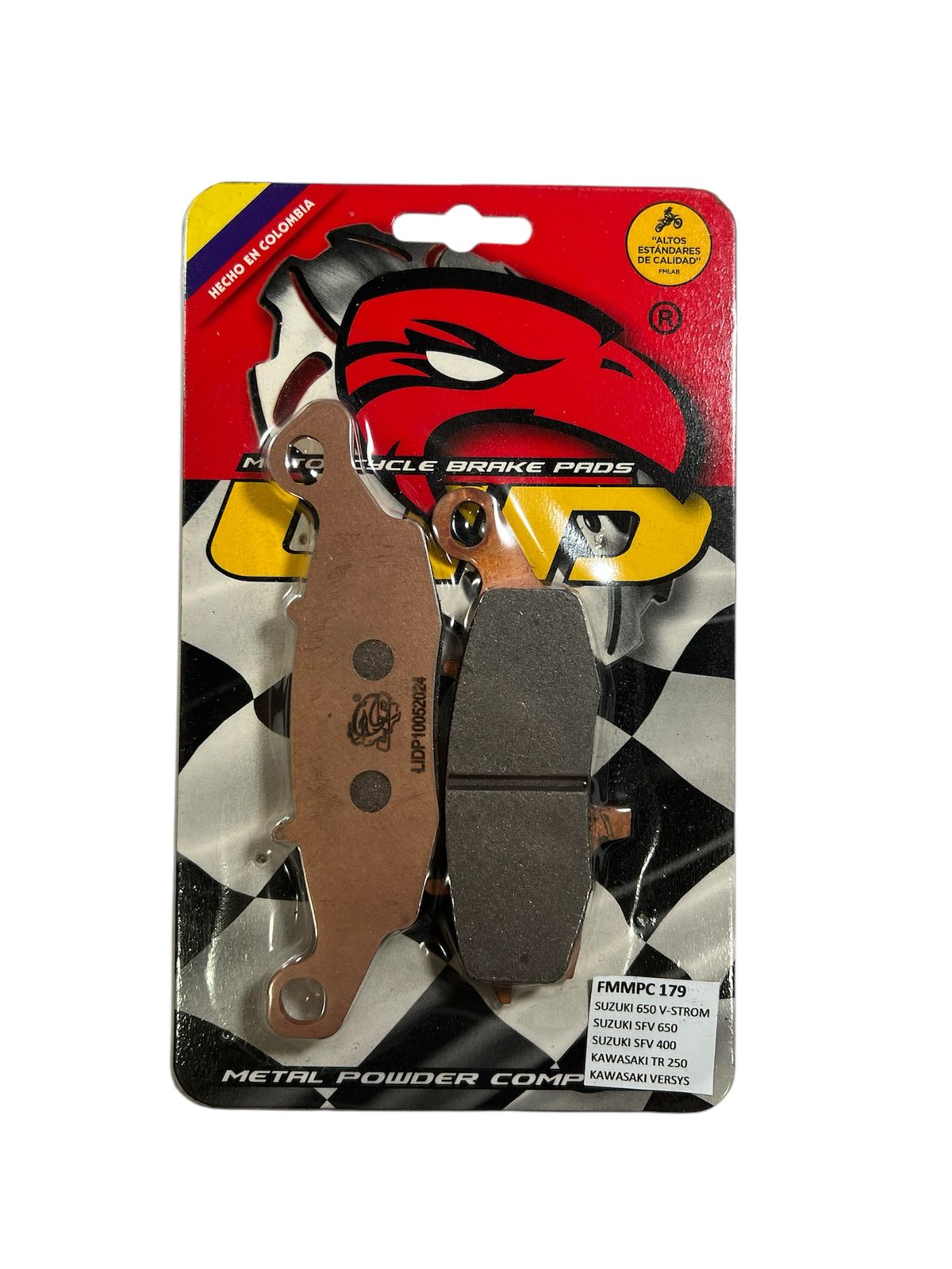 Pastilla de freno para moto LID RACING PREMIUM desarrolladas para ser compatibles con KAWASAKI VERSYS , con aplicación en los frenos DELANTEROS y fabricadas con un compuesto COBRIZADO 100% libre de asbesto.